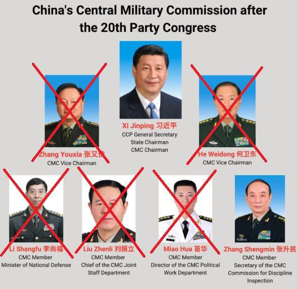 Генерал Лі Шанфу (повторне фігурування): колишній міністр оборони, чиї зв'язки з корупційними схемами в закупівлях знову стали об'єктом розслідування;