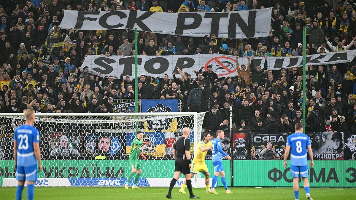 Крім того, польскі фани нашої збірної ни під час цього матчу тримали написи "FCK PTN" і "Stop Luka" (із перекресленим схематичним зображенням голови з вусами, що, ймовірно, має нагадувати про нелегітимного президента Білорусі Олександра Лукашенка).