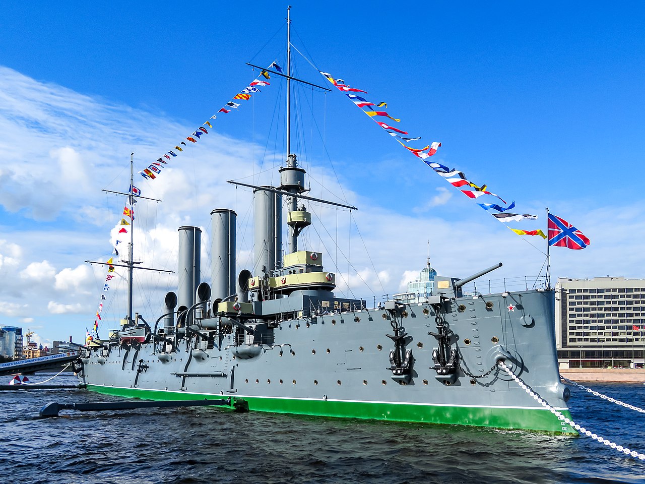 - Історія та битви: Внаслідок невдалого розрахунку не досяг проектних характеристик зі швидкості, був недоозброєний. Учасник трагічної для росії Цусімської битви (1905), після якої у складі загону крейсерів втік на Філіппіни. У жовтні 1917 року дав постріл, що став сигналом до захоплення влади більшовиками. Під час Другої світової війни гармати знятої з корабля батареї захищали Ленінград на суші, а сам корабель був напівзатоплений у гавані Оранієнбаума після обстрілів. У 1980 рр. під час реставрації підводна частина корпусу була виготовлена заново.