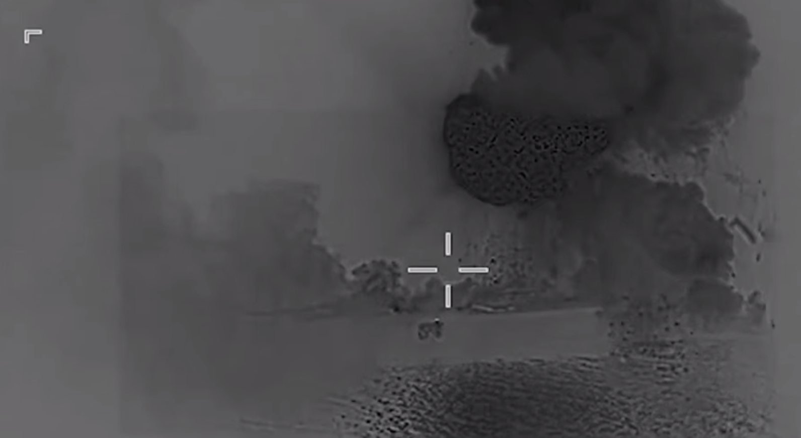 На оприлюдненому відео удару видно, як у нерухомий корабель влучає ракета чи бомба у середню частину польотної палуби, а згодом ще одна ракета чи бомба влучає у кормову надбудову, повністю зруйнувавши її. Після цього корабель затонув.