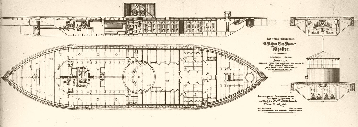 На Півдні вирішили не винаходити велосипед, а просто оббити залізом те, що мали. Взяли спалений і потоплений фрегат «Меррімак», підняли його, і вирішили: «А давайте приб'ємо на нього залізо, поставимо гармати, і нехай воно плаває!» Адже головною цінністю колишнього фрегата була зовсім нова парова машина, яку у Південних штатах виготовити не могли. Результат був вражаючим, як для сільськогосподарської виставки: