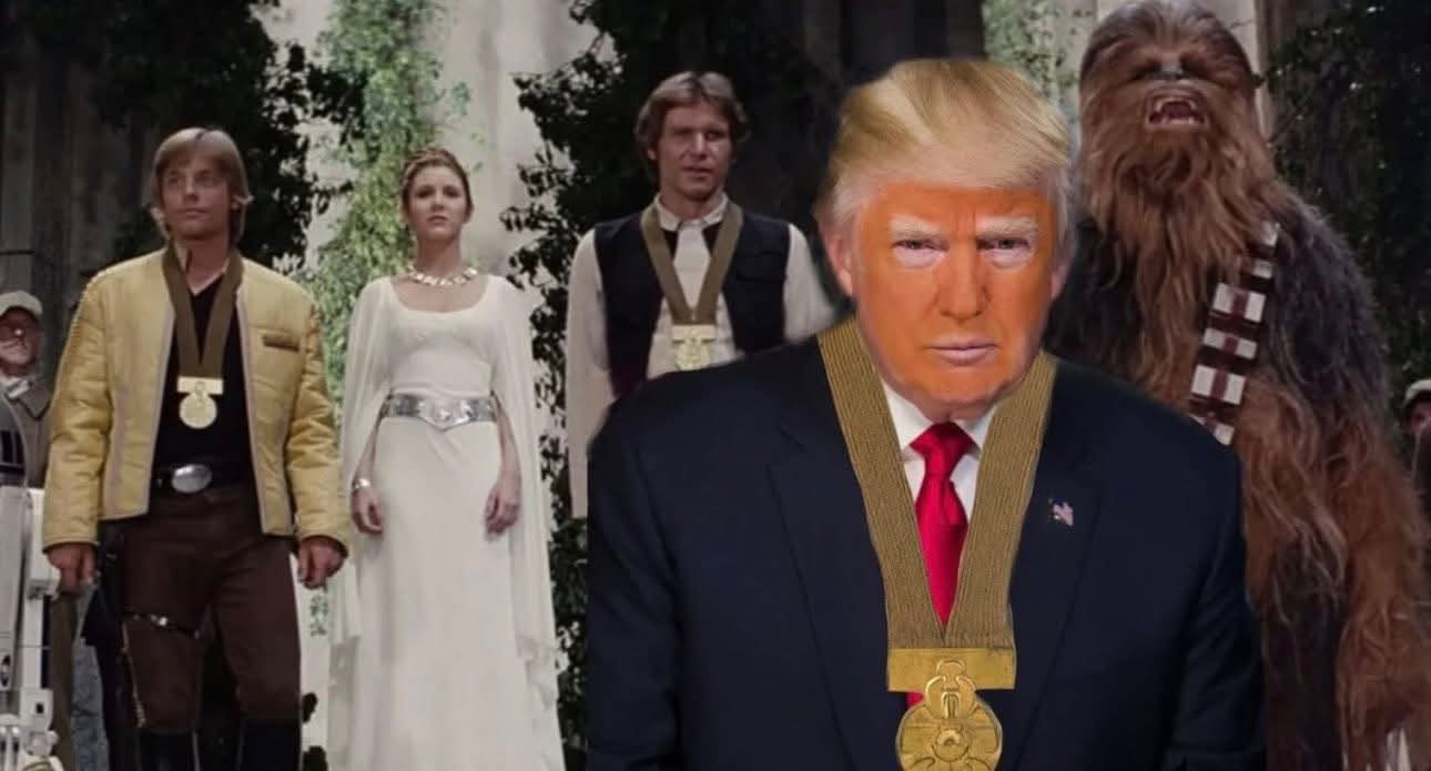 Користувачі Reddit пішли далі й почали створювати фотожаби, де Трамп стоїть у черзі за нагородами від найнесподіваніших персонажів.