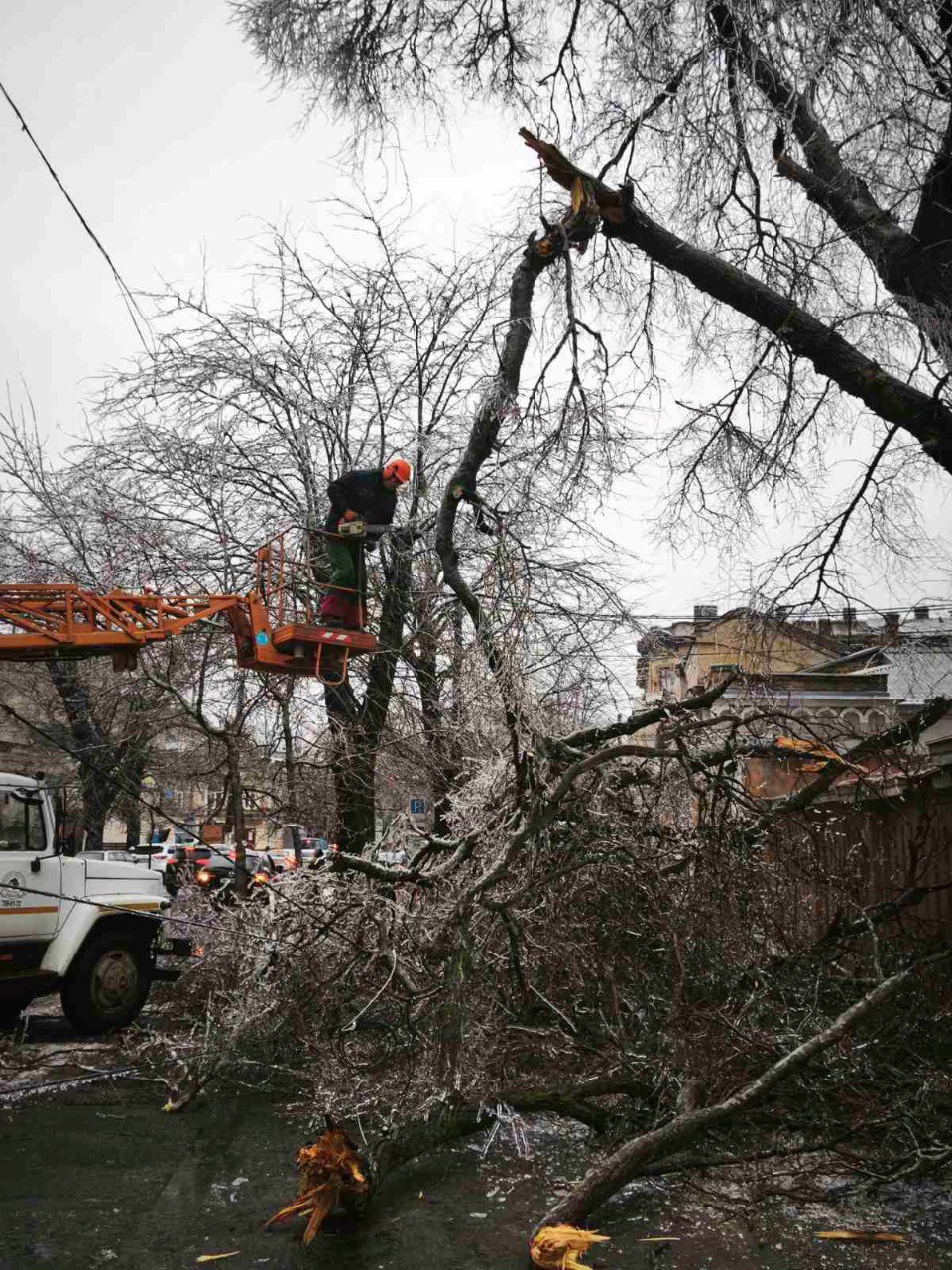 Станом на 16 годину дня в місті негодою повалено 18 дерев та великих гілок. На локаціях працюють спеціалісти КП "Міськзелентрест"