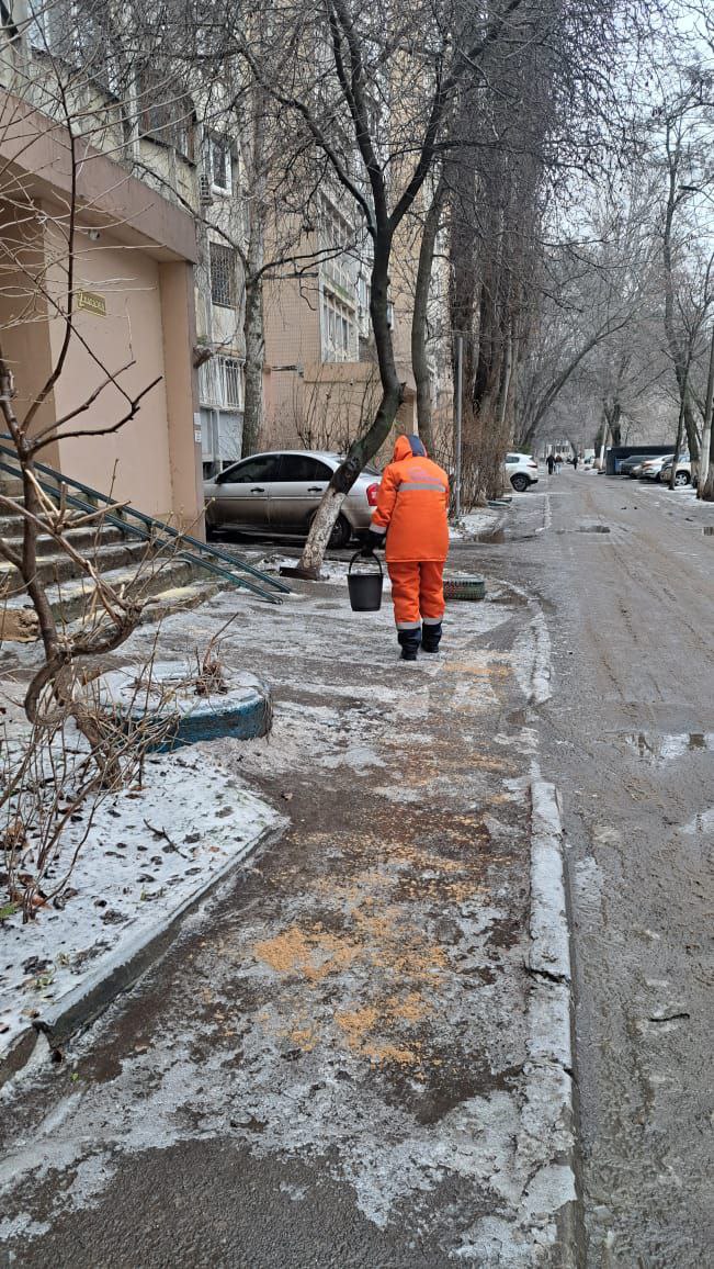 Комунальники займаються посипанням доріг, тротуарів, зупиночних комплексів та підпорядкованих територій піском.
