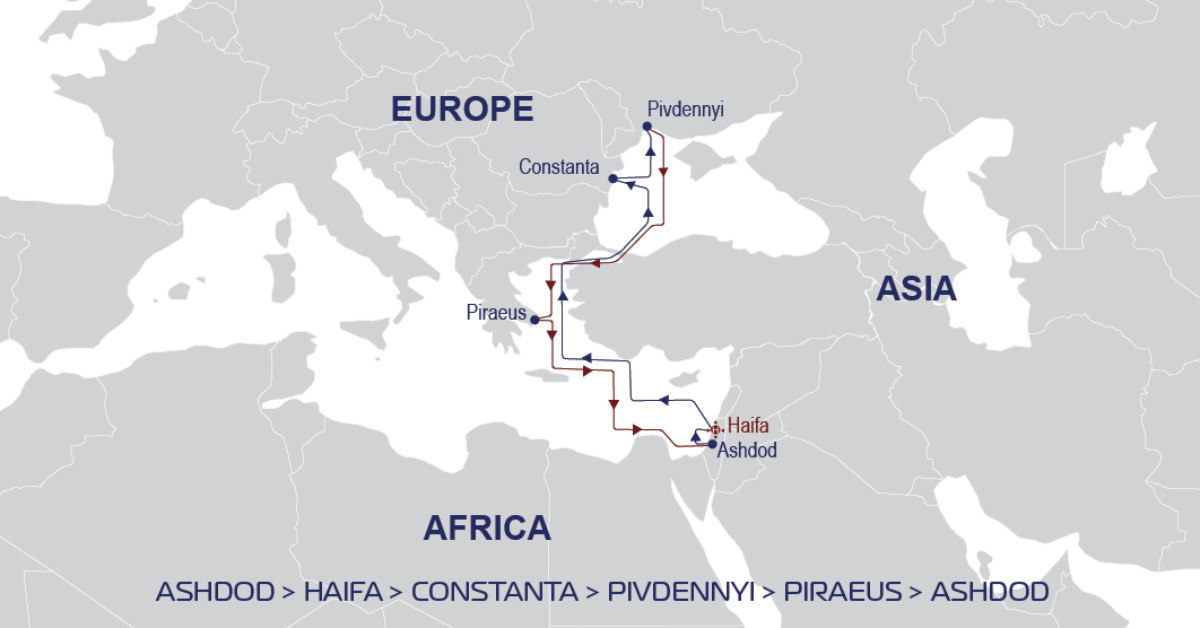 ZIM відновлює сервіс LBX - наразі єдиний прямий контейнерний сервіс Україна – Ізраїль на ринку. Контейнеровози також будуть заходити в Пірей та Констанцу.