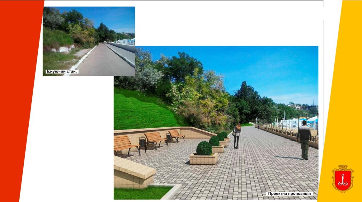 19 березня одеський виконком на своєму засіданні затвердив проєкт першої черги благоустрою набережної в межах узбережжя від Ланжерону до Золотого берега. Загальна протяжність ділянки становить 15 км, а площа — 45 800 кв. м. Територія переважно використовується для пішохідних прогулянок уздовж моря.