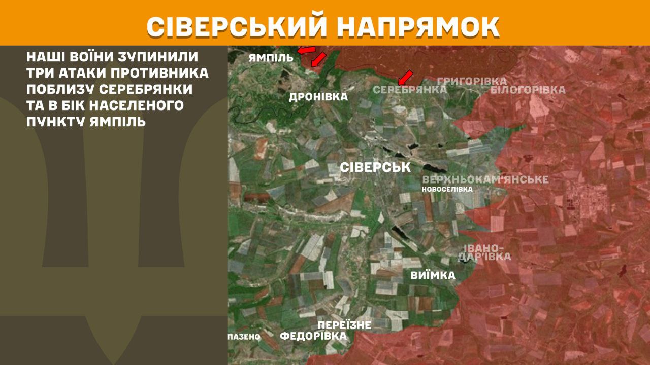 На Сіверському напрямку наші воїни зупинили три атаки противника поблизу Серебрянки та в бік населеного пункту Ямпіль.