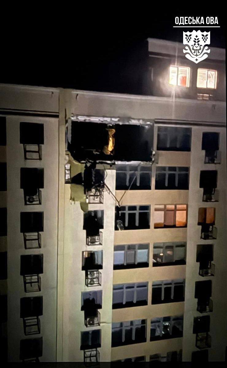 Внаслідок нічної російської атаки в Одесі пошкоджені житлові будинки та обʼєкти інфраструктури. Вибуховою хвилею вибито вікна комерційних приміщень та автосалону.