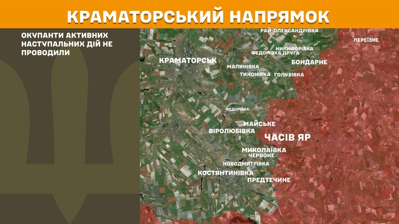 На Краматорському та Оріхівському напрямках минулої доби окупанти активних наступальних дій не проводили.
